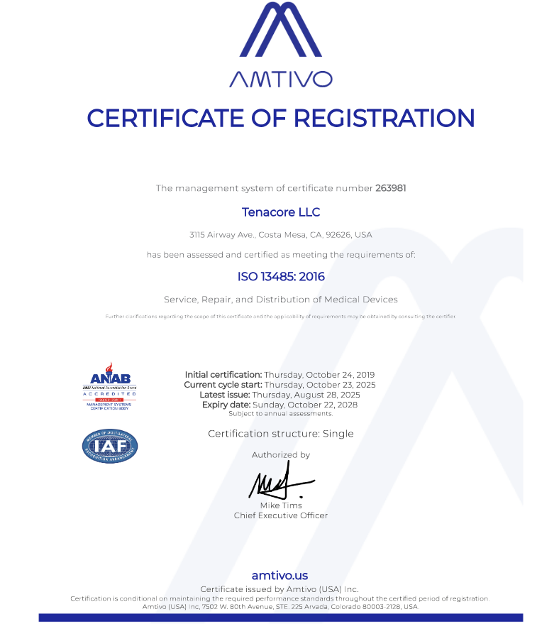 Tenacore is committed to ensuring a positive customer experience by providing timely high-quality service and repair solutions. We comply with all customer and applicable regulatory requirements while continually improving our processes to enhance customer satisfaction.